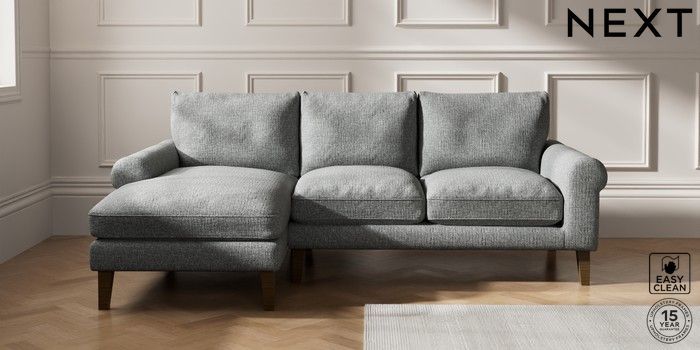 7.0.3 Buy Palermo Relaxed Sit Medium Sofa Chaise - Left Hand Chunky Boucle Easy Clean Mid Grey Tapered - Mid from the Next UK online shop Click here to use our accessible website