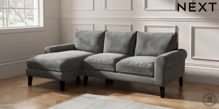 6.12.1 Buy Palermo Relaxed Sit Medium Sofa Chaise - Left Hand Chunky Chenille Dark Grey Tapered - Dark from the Next UK online shop Click here to use our accessible website