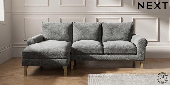 7.0.3 Buy Palermo Relaxed Sit Medium Sofa Chaise - Left Hand Chunky Chenille Dark Grey Tapered - Light from the Next UK online shop Click here to use our accessible website