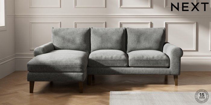 7.0.3 Buy Palermo Relaxed Sit Medium Sofa Chaise - Left Hand Chunky Chenille Dark Grey Tapered - Mid from the Next UK online shop Click here to use our accessible website