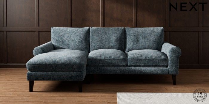 7.0.3 Buy Palermo Relaxed Sit Medium Sofa Chaise - Left Hand Chunky Chenille Dark Navy Blue Tapered - Dark from the Next UK online shop Click here to use our accessible website