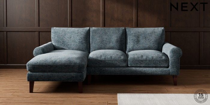 7.0.3 Buy Palermo Relaxed Sit Medium Sofa Chaise - Left Hand Chunky Chenille Dark Navy Blue Tapered - Dark Brown from the Next UK online shop Click here to use our accessible website