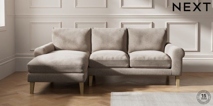 7.0.3 Buy Palermo Relaxed Sit Medium Sofa Chaise - Left Hand Chunky Chenille Light Dove Tapered - Light from the Next UK online shop Click here to use our accessible website