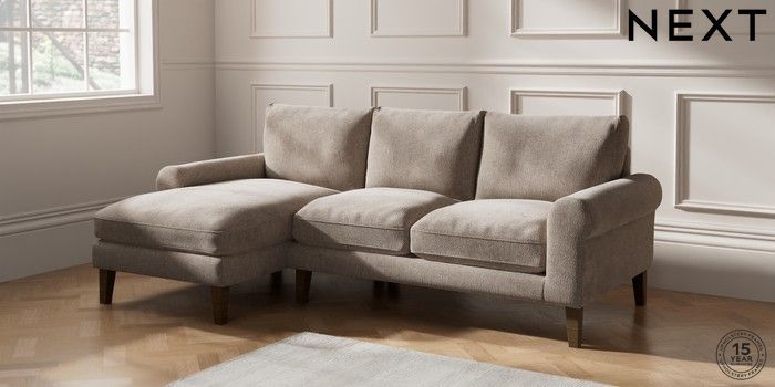 6.12.1 Buy Palermo Relaxed Sit Medium Sofa Chaise - Left Hand Chunky Chenille Light Dove Tapered - Mid from the Next UK online shop Click here to use our accessible website