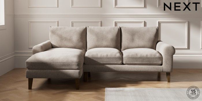 7.0.3 Buy Palermo Relaxed Sit Medium Sofa Chaise - Left Hand Chunky Chenille Light Dove Tapered - Mid from the Next UK online shop Click here to use our accessible website