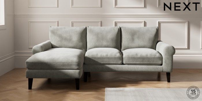 7.0.3 Buy Palermo Relaxed Sit Medium Sofa Chaise - Left Hand Chunky Chenille Light Grey Tapered - Dark from the Next UK online shop Click here to use our accessible website