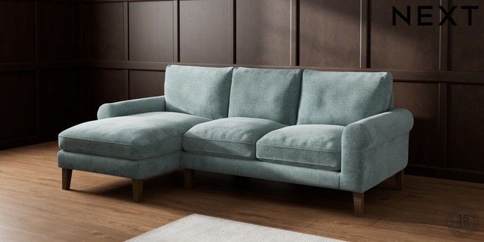 6.12.1 Buy Palermo Relaxed Sit Medium Sofa Chaise - Left Hand Chunky Chenille Light Teal Green Tapered - Mid from the Next UK online shop Click here to use our accessible website