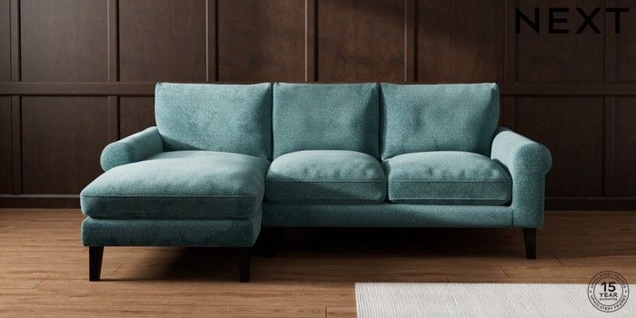 7.0.3 Buy Palermo Relaxed Sit Medium Sofa Chaise - Left Hand Chunky Chenille Mid Teal Green Tapered - Dark from the Next UK online shop Click here to use our accessible website