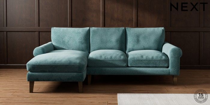 7.0.3 Buy Palermo Relaxed Sit Medium Sofa Chaise - Left Hand Chunky Chenille Mid Teal Green Tapered - Mid from the Next UK online shop Click here to use our accessible website
