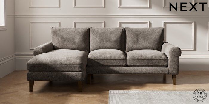 7.0.3 Buy Palermo Relaxed Sit Medium Sofa Chaise - Left Hand Chunky Chenille Mink Brown Tapered - Mid from the Next UK online shop Click here to use our accessible website