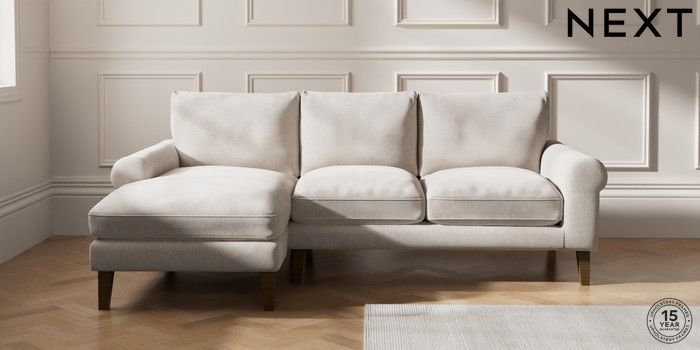 7.0.3 Buy Palermo Relaxed Sit Medium Sofa Chaise - Left Hand Chunky Chenille Oyster Tapered - Mid from the Next UK online shop Click here to use our accessible website