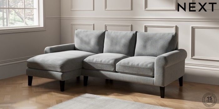 6.12.1 Buy Palermo Relaxed Sit Medium Sofa Chaise - Left Hand Chunky Marl Mid Grey Tapered - Dark from the Next UK online shop Click here to use our accessible website