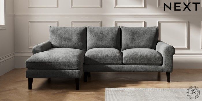 7.0.3 Buy Palermo Relaxed Sit Medium Sofa Chaise - Left Hand Chunky Texture Dark Grey Tapered - Dark from the Next UK online shop Click here to use our accessible website