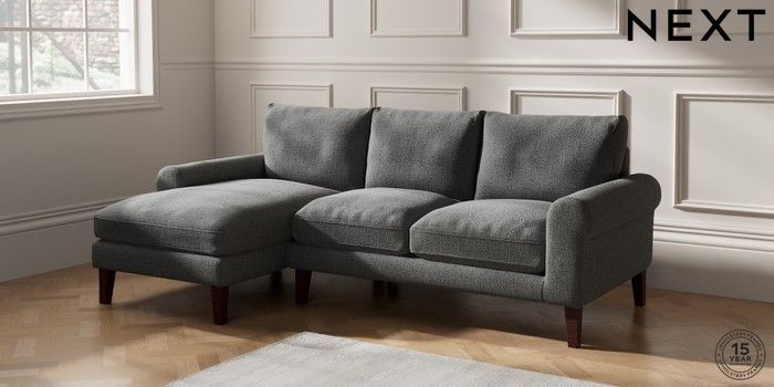 6.12.1 Buy Palermo Relaxed Sit Medium Sofa Chaise - Left Hand Chunky Texture Dark Grey Tapered - Dark Brown from the Next UK online shop Click here to use our accessible website