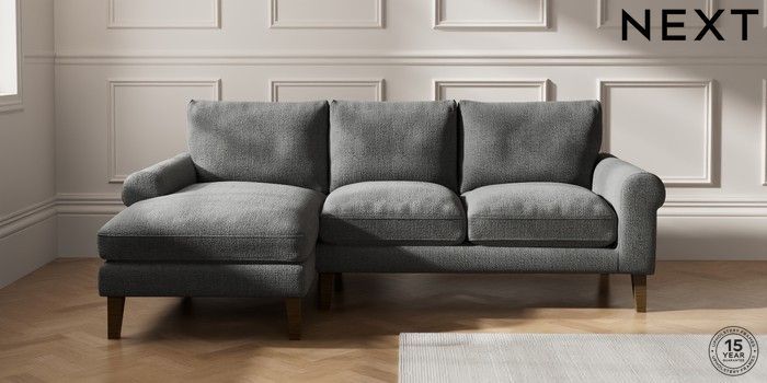 7.0.3 Buy Palermo Relaxed Sit Medium Sofa Chaise - Left Hand Chunky Texture Dark Grey Tapered - Mid from the Next UK online shop Click here to use our accessible website