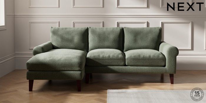 7.0.3 Buy Palermo Relaxed Sit Medium Sofa Chaise - Left Hand Chunky Texture Mid Forest Green Tapered - Dark Brown from the Next UK online shop Click here to use our accessible website