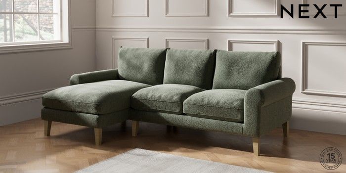 6.12.1 Buy Palermo Relaxed Sit Medium Sofa Chaise - Left Hand Chunky Texture Mid Forest Green Tapered - Light from the Next UK online shop Click here to use our accessible website