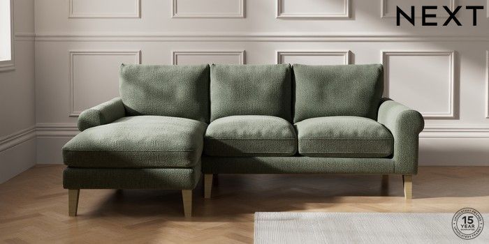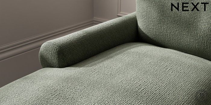 7.0.3 Buy Palermo Relaxed Sit Medium Sofa Chaise - Left Hand Chunky Texture Mid Forest Green Tapered - Light from the Next UK online shop Click here to use our accessible website