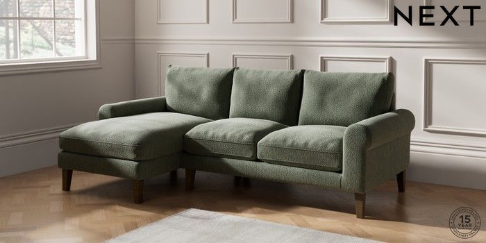 6.12.1 Buy Palermo Relaxed Sit Medium Sofa Chaise - Left Hand Chunky Texture Mid Forest Green Tapered - Mid from the Next UK online shop Click here to use our accessible website