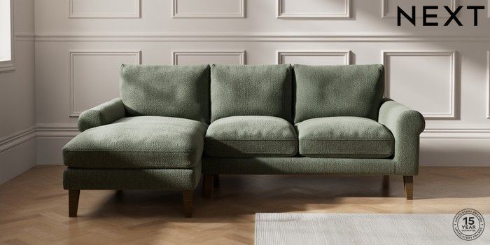 7.0.3 Buy Palermo Relaxed Sit Medium Sofa Chaise - Left Hand Chunky Texture Mid Forest Green Tapered - Mid from the Next UK online shop Click here to use our accessible website