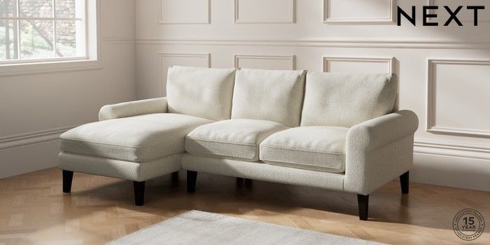 6.12.1 Buy Palermo Relaxed Sit Medium Sofa Chaise - Left Hand Chunky Texture Oyster Tapered - Dark from the Next UK online shop Click here to use our accessible website