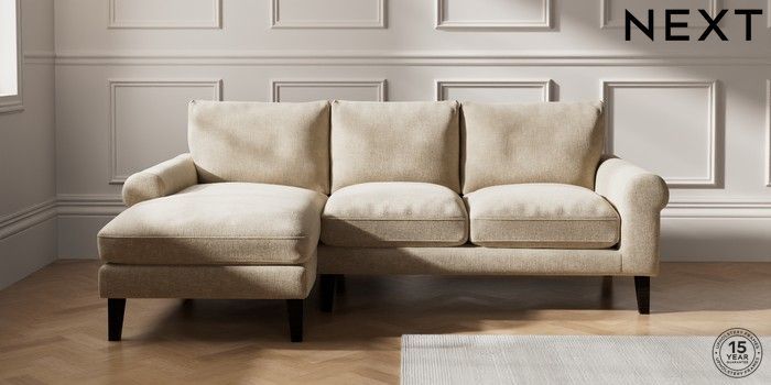 7.0.3 Buy Palermo Relaxed Sit Medium Sofa Chaise - Left Hand Chunky Weave Cream Tapered - Dark from the Next UK online shop Click here to use our accessible website