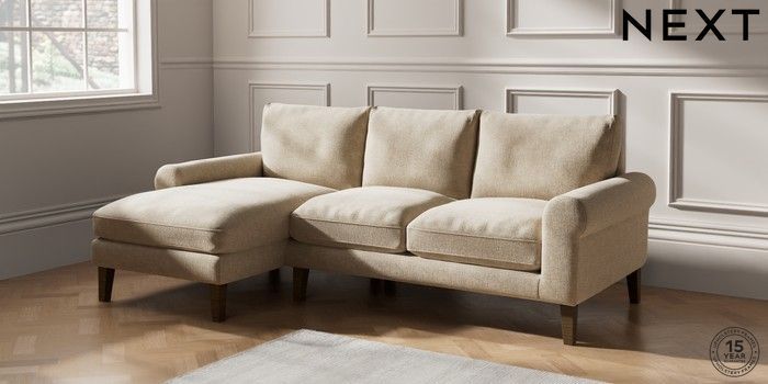 6.12.1 Buy Palermo Relaxed Sit Medium Sofa Chaise - Left Hand Chunky Weave Cream Tapered - Mid from the Next UK online shop Click here to use our accessible website