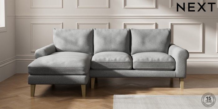 7.0.3 Buy Palermo Relaxed Sit Medium Sofa Chaise - Left Hand Chunky Weave Mid Grey Tapered - Light from the Next UK online shop Click here to use our accessible website