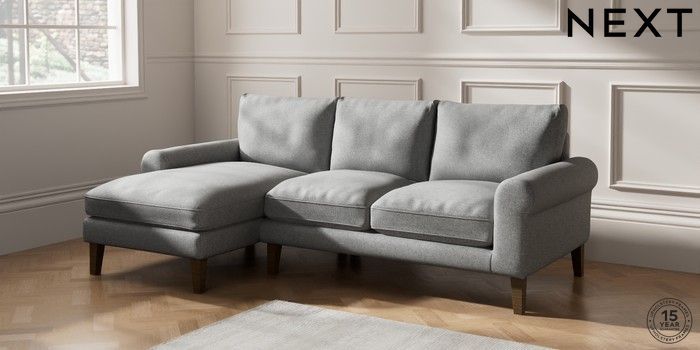 6.12.1 Buy Palermo Relaxed Sit Medium Sofa Chaise - Left Hand Chunky Weave Mid Grey Tapered - Mid from the Next UK online shop Click here to use our accessible website