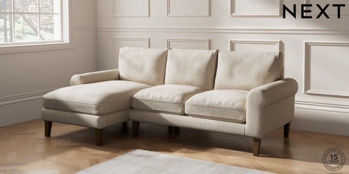 6.12.1 Buy Palermo Relaxed Sit Medium Sofa Chaise - Left Hand Chunky Weave Mid Natural Tapered - Mid from the Next UK online shop Click here to use our accessible website
