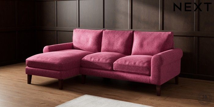 6.12.1 Buy Palermo Relaxed Sit Medium Sofa Chaise - Left Hand Cotswold Chenille Dark Raspberry Pink Tapered - Dark Brown from the Next UK online shop Click here to use our accessible website