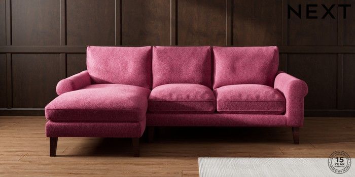 7.0.3 Buy Palermo Relaxed Sit Medium Sofa Chaise - Left Hand Cotswold Chenille Dark Raspberry Pink Tapered - Dark Brown from the Next UK online shop Click here to use our accessible website