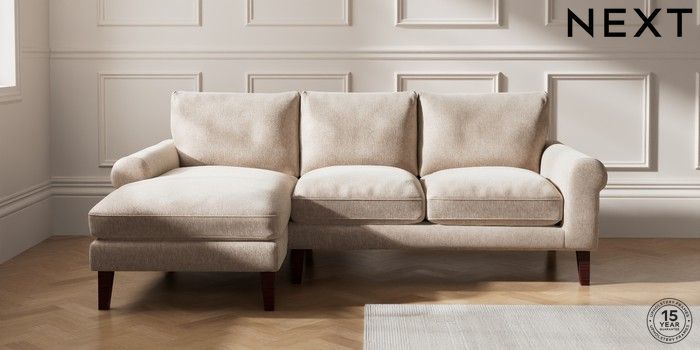 7.0.3 Buy Palermo Relaxed Sit Medium Sofa Chaise - Left Hand Cotswold Chenille Light Natural Tapered - Dark Brown from the Next UK online shop Click here to use our accessible website