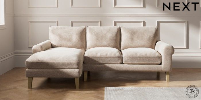 7.0.3 Buy Palermo Relaxed Sit Medium Sofa Chaise - Left Hand Cotswold Chenille Light Natural Tapered - Light from the Next UK online shop Click here to use our accessible website