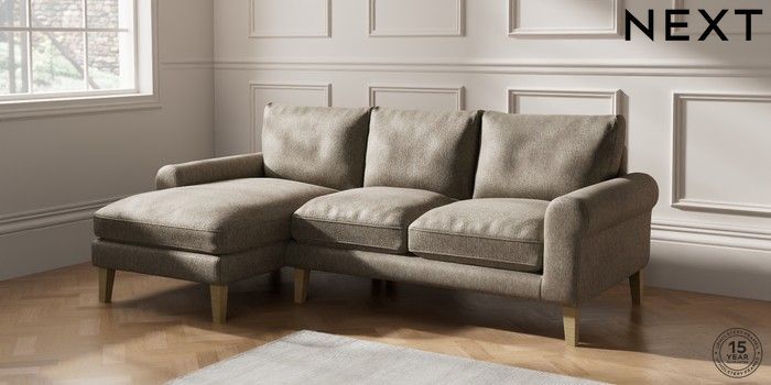 6.12.1 Buy Palermo Relaxed Sit Medium Sofa Chaise - Left Hand Cotswold Chenille Mid Mink Brown Tapered - Light from the Next UK online shop Click here to use our accessible website