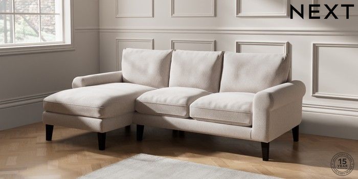 6.12.1 Buy Palermo Relaxed Sit Medium Sofa Chaise - Left Hand Cotswold Chenille Oyster Tapered - Dark from the Next UK online shop Click here to use our accessible website