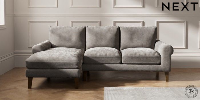 7.0.3 Buy Palermo Relaxed Sit Medium Sofa Chaise - Left Hand Distressed Velour French Grey Tapered - Mid from the Next UK online shop Click here to use our accessible website