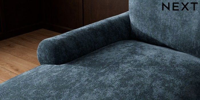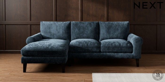 7.0.3 Buy Palermo Relaxed Sit Medium Sofa Chaise - Left Hand Distressed Velour Midnight Blue Tapered - Dark from the Next UK online shop Click here to use our accessible website