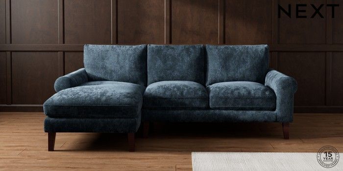 7.0.3 Buy Palermo Relaxed Sit Medium Sofa Chaise - Left Hand Distressed Velour Midnight Blue Tapered - Dark Brown from the Next UK online shop Click here to use our accessible website
