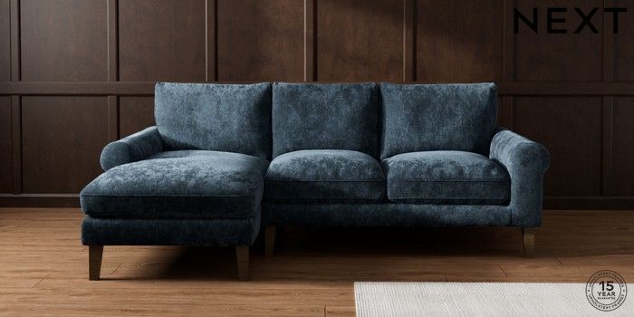7.0.3 Buy Palermo Relaxed Sit Medium Sofa Chaise - Left Hand Distressed Velour Midnight Blue Tapered - Mid from the Next UK online shop Click here to use our accessible website