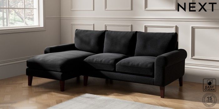 6.12.1 Buy Palermo Relaxed Sit Medium Sofa Chaise - Left Hand Fine Chenille Easy Clean Black Tapered - Dark Brown from the Next UK online shop Click here to use our accessible website
