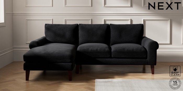 7.0.3 Buy Palermo Relaxed Sit Medium Sofa Chaise - Left Hand Fine Chenille Easy Clean Black Tapered - Dark Brown from the Next UK online shop Click here to use our accessible website