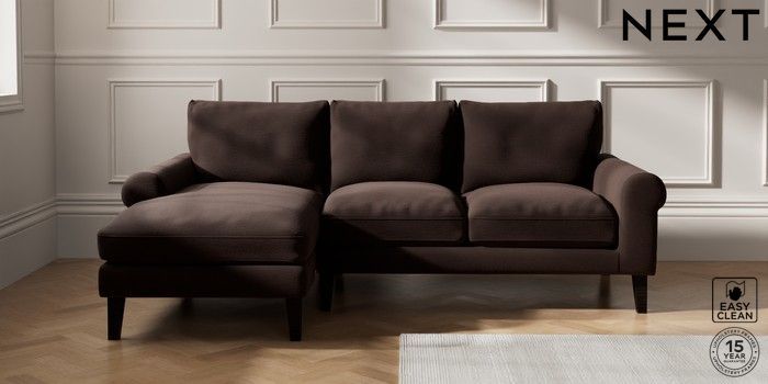 7.0.3 Buy Palermo Relaxed Sit Medium Sofa Chaise - Left Hand Fine Chenille Easy Clean Chocolate Brown Tapered - Dark from the Next UK online shop Click here to use our accessible website