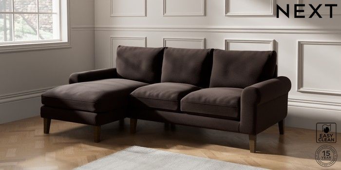 6.12.1 Buy Palermo Relaxed Sit Medium Sofa Chaise - Left Hand Fine Chenille Easy Clean Chocolate Brown Tapered - Mid from the Next UK online shop Click here to use our accessible website
