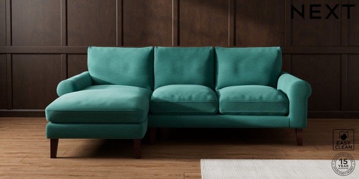 7.0.3 Buy Palermo Relaxed Sit Medium Sofa Chaise - Left Hand Fine Chenille Easy Clean Dark Juniper Green Tapered - Dark Brown from the Next UK online shop Click here to use our accessible website