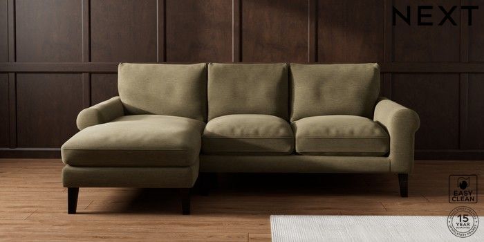 7.0.3 Buy Palermo Relaxed Sit Medium Sofa Chaise - Left Hand Fine Chenille Easy Clean Dark Moss Green Tapered - Dark from the Next UK online shop Click here to use our accessible website