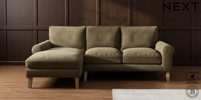 7.0.3 Buy Palermo Relaxed Sit Medium Sofa Chaise - Left Hand Fine Chenille Easy Clean Dark Moss Green Tapered - Light from the Next UK online shop Click here to use our accessible website