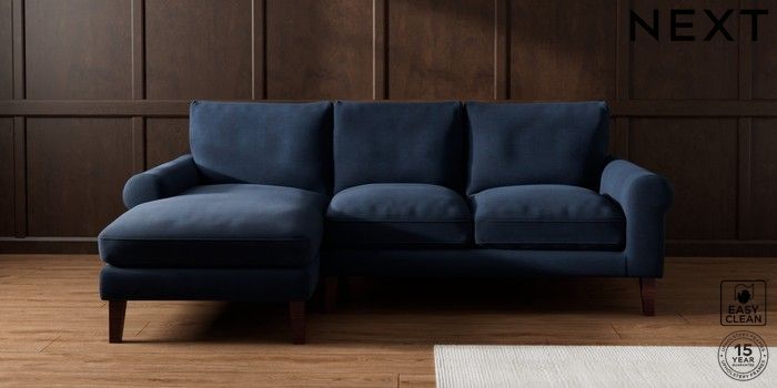 7.0.3 Buy Palermo Relaxed Sit Medium Sofa Chaise - Left Hand Fine Chenille Easy Clean Dark Navy Blue Tapered - Dark Brown from the Next UK online shop Click here to use our accessible website
