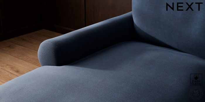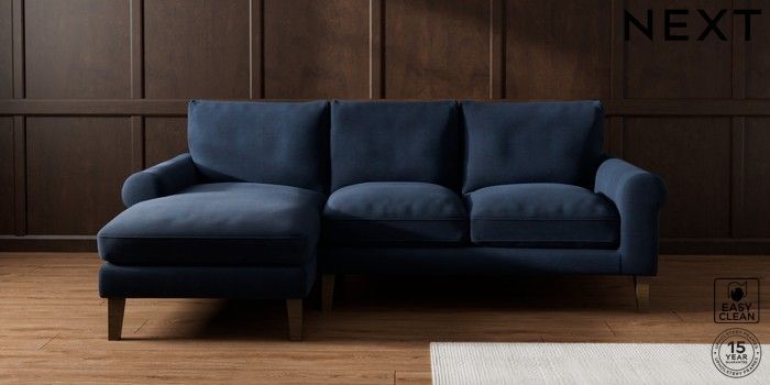 7.0.3 Buy Palermo Relaxed Sit Medium Sofa Chaise - Left Hand Fine Chenille Easy Clean Dark Navy Blue Tapered - Mid from the Next UK online shop Click here to use our accessible website