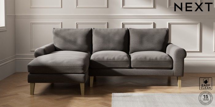 7.0.3 Buy Palermo Relaxed Sit Medium Sofa Chaise - Left Hand Fine Chenille Easy Clean Dark Smoke Grey Tapered - Light from the Next UK online shop Click here to use our accessible website